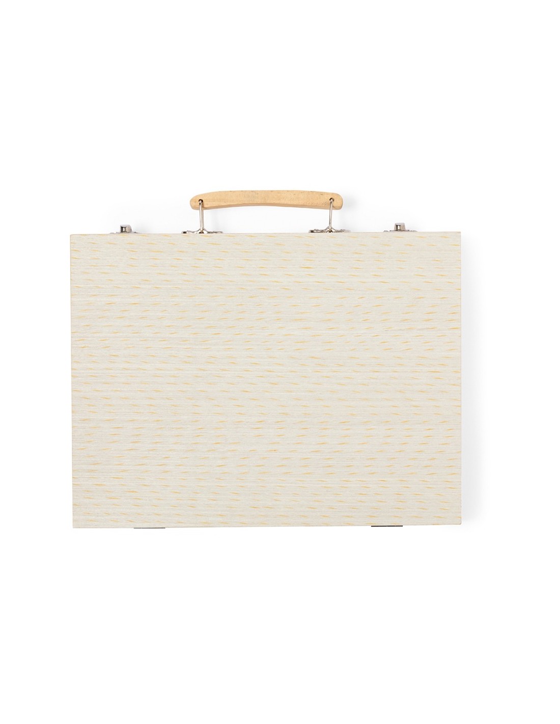 Completo maletín para colorear fabricado en madera, con cómoda asa de transporte. Contenido: