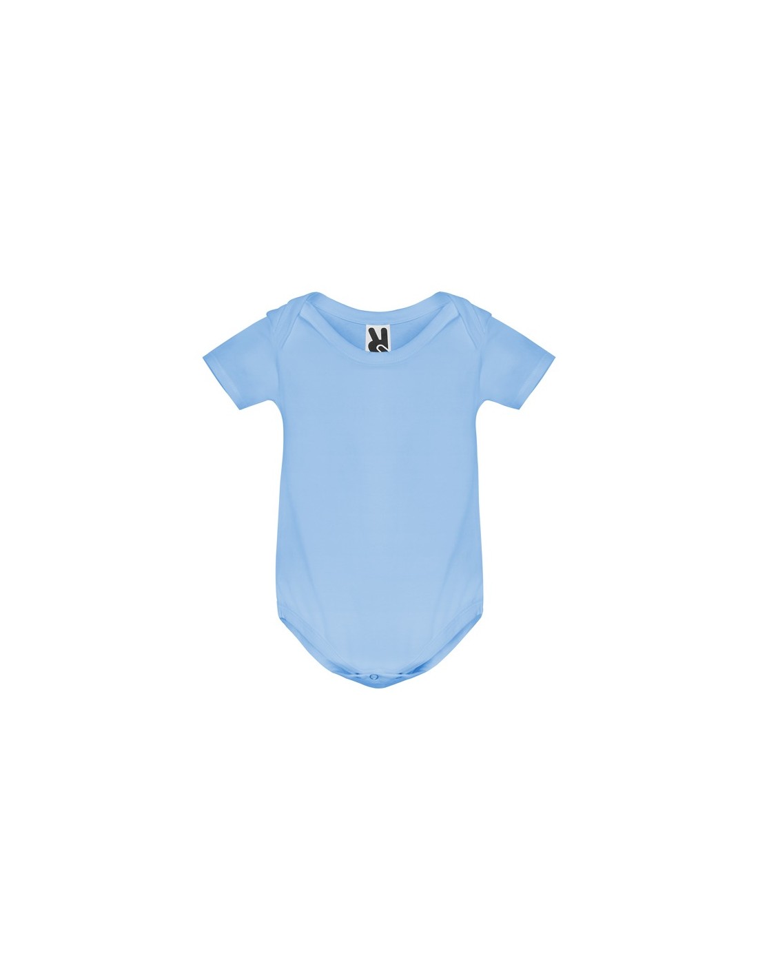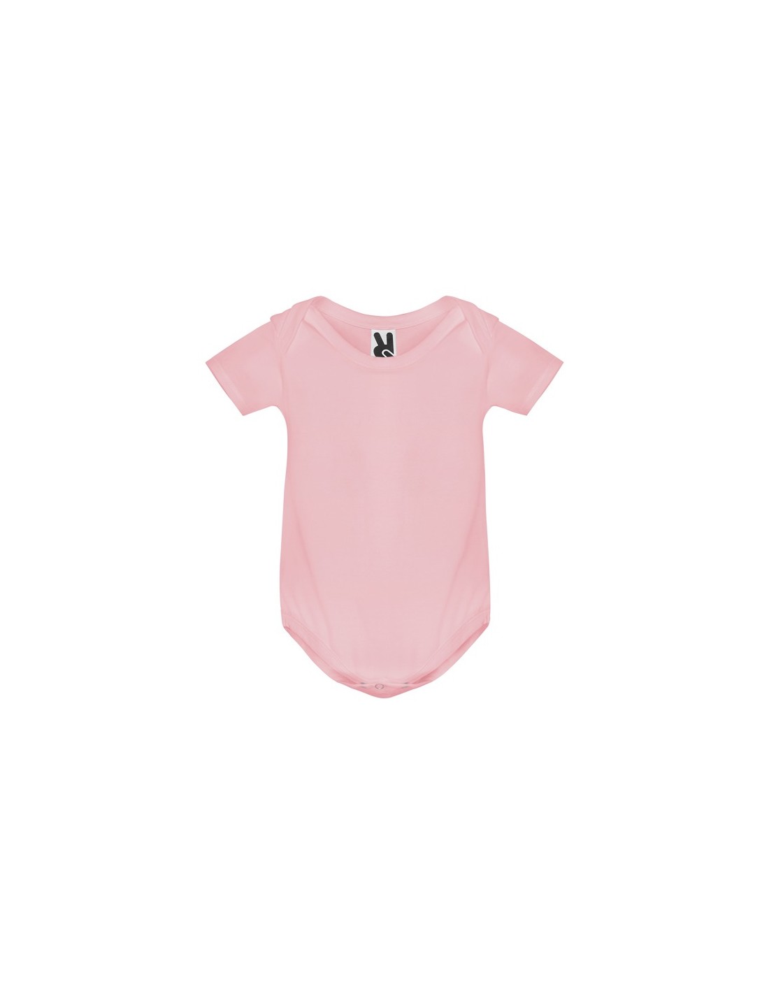 Body de bebé con manga corta de punto liso. Cuello redondo y bajo ribeteado en canalé 1x1. Cierre con botones a presión en la entrepierna. Hombro de apertura cruzada.